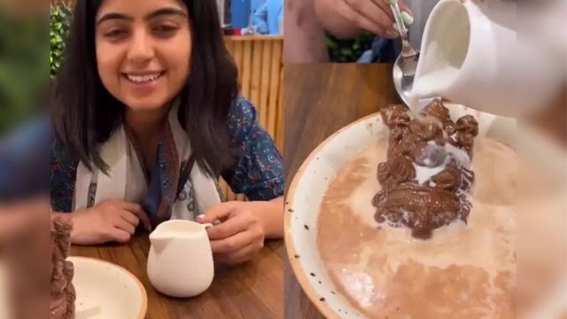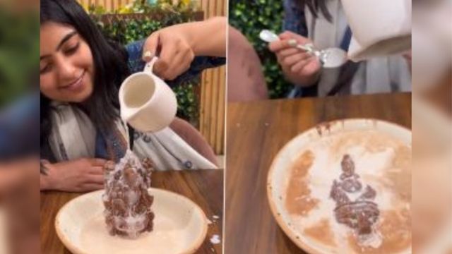 The food blogger was seen dining in a restaurant while holding a thali that contains a chocolate shaped Ganesha idol. To melt the idol, she then begins to pour hot milk on it. The food blogger was participating in the eco-friendly Ganesh Mahotsav when she did this.