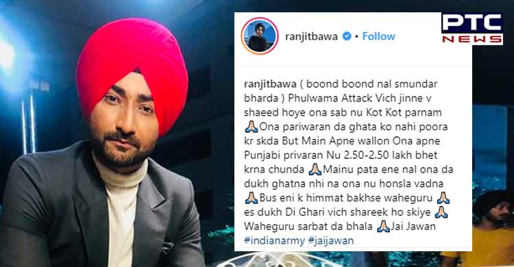 Ranjit Bawa - Noted Punjabi singer Ranjit Bawa also donated Rs 2.5 lakh each to the families of Pulwama martyrs from Punjab.