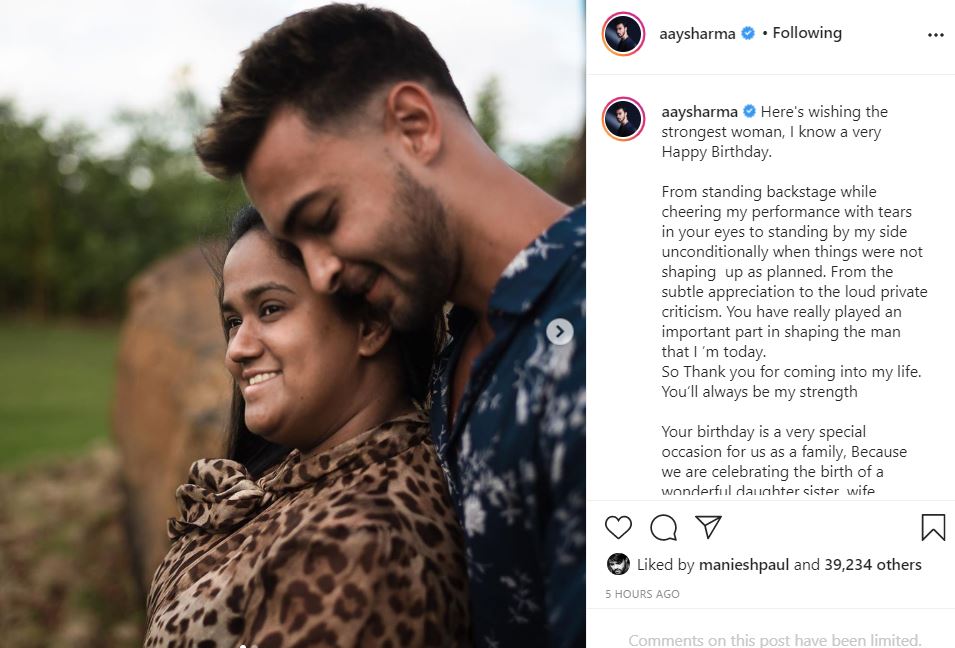 ਦੱਸ ਦਈਏ ਪਿਛਲੇ ਸਾਲ ਸਲਮਾਨ ਖ਼ਾਨ ਦੇ ਜਨਮਦਿਨ ਵਾਲੇ ਦਿਨ ਹੀ ਭੈਣ ਅਰਪਿਤਾ ਨੇ ਇੱਕ ਧੀ ਨੂੰ ਜਨਮ ਦਿੱਤਾ ਸੀ । ਜਿਸ ਤੋਂ ਬਾਅਦ ਸਲਮਾਨ ਖ਼ਾਨ ਦੀ ਖੁਸ਼ੀ ਦੁਗਣੀ ਹੋ ਗਈ ਸੀ । ਹੁਣ ਅਰਪਿਤਾ ਖ਼ਾਨ ਸ਼ਰਮਾ ਤੇ ਆਯੁਸ਼ ਸ਼ਰਮਾ ਇੱਕ ਬੇਟੇ ਤੇ ਇੱਕ ਧੀ ਦੇ ਮਾਪੇ ਨੇ । ਆਯੁਸ਼ ਸ਼ਰਮਾ ਨੇ ਸਾਲ 2018 ‘ਚ ਫ਼ਿਲਮ ‘ਲਵ ਯਾਤਰੀ’ ਦੇ ਨਾਲ ਬਾਲੀਵੁੱਡ ‘ਚ ਡੈਬਿਊ ਕੀਤਾ ਸੀ । ਇਸ ਤੋਂ ਇਲਾਵਾ ਆਯੁਸ਼ ਸ਼ਰਮਾ ਕਈ ਨਾਮੀ ਗਾਇਕਾਂ ਦੇ ਵੀਡੀਓ 'ਚ ਵੀ ਅਦਾਕਾਰੀ ਕਰ ਚੁੱਕੇ ਨੇ ।