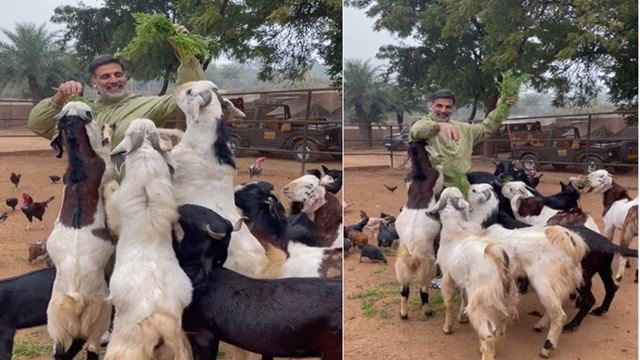 ਇਸ ਵੀਡੀਓ 'ਚ ਉਹ ਬੱਕਰੀਆਂ ਨੂੰ ਚਾਰਾ ਦਿੰਦੇ ਹੋਏ ਅਤੇ ਮੁਰਗੀਆਂ ਨੂੰ ਦਾਣਾ ਖਵਾਉਂਦੇ ਹੋਏ ਨਜ਼ਰ ਆਏ। ਇਸ ਵੀਡੀਓ 'ਚ ਅਕਸ਼ੈ ਜਨਵਰਾਂ ਨੂੰ ਘਾਹ ਖੁਆਉਂਦੇ ਨਜ਼ਰ ਆ ਰਹੇ ਹਨ। ਵੀਡੀਓ ਨੂੰ ਸ਼ੇਅਰ ਕਰਦੇ ਹੋਏ ਅਕਸ਼ੈ ਨੇ ਕੈਪਸ਼ਨ ਵੀ ਲਿਖਿਆ ਹੈ, ਜਿਸ ਨੂੰ ਲੋਕ ਕਾਫੀ ਪਸੰਦ ਕਰ ਕਰ ਰਹੇ ਹਨ।