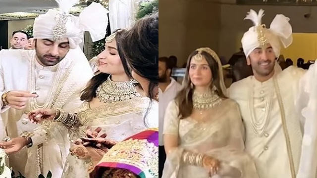 ਇਸ ਵਿਆਹ ਨੂੰ ਕਾਫੀ ਨਿੱਜੀ ਰੱਖਿਆ ਗਿਆ ਸੀ, ਪਰ ਵਿਆਹ ਤੋਂ ਬਾਅਦ ਇਸ ਵਿਆਹ ਦੀਆਂ ਇੱਕ ਤੋਂ ਬਾਅਦ ਇੱਕ ਤਸਵੀਰਾਂ ਅਤੇ ਵੀਡੀਓਜ਼ ਵਾਇਰਲ ਹੋ ਰਹੇ ਹਨ ।ਇੱਕ ਵੀਡੀਓ ਵੀ ਸੋਸ਼ਲ ਮੀਡੀਆ ‘ਤੇ ਵਾਇਰਲ ਹੋ ਰਿਹਾ ਹੈ । ਜਿਸ ‘ਚ ਰਣਬੀਰ ਆਲੀਆ ਨੂੰ ਆਪਣੀ ਗੋਦ ‘ਚ ਚੁੱਕ ਕੇ ਆਪਣੇ ਘਰ ਲਿਜਾਂਦੇ ਹੋਏ ਵਿਖਾਈ ਦੇ ਰਹੇ ਹਨ ।