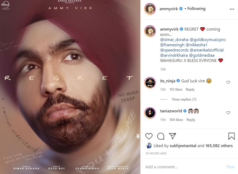 ਐਮੀ ਵਿਰਕ ਲੈ ਕੇ ਆ ਰਹੇ ਨੇ ਨਵਾਂ ਸਿੰਗਲ ਟਰੈਕ ‘REGRET’, ਪੋਸਟਰ ਛਾਇਆ ਸੋਸ਼ਲ ਮੀਡੀਆ ਉੱਤੇ