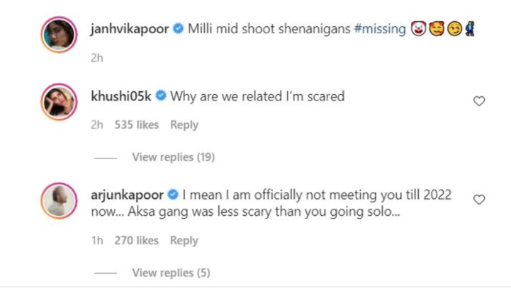 Janhvi Kapoor ਏਨੀਂ ਦਿਨੀਂ ਉਤਰਾਖੰਡ ਦੀਆਂ ਬਰਫੀਲੀਆਂ ਪਹਾੜੀਆਂ ਤੇ ਛੁੱਟੀਆਂ ਮਨਾ ਰਹੀ ਹੈ । ਜਾਨ੍ਹਵੀ ਬਰਫੀਲੀਆਂ ਪਹਾੜੀਆਂ ‘ਚ ਆਪਣੀਆਂ ਛੁੱਟੀਆਂ ਨੂੰ ਖੂਬ ਇਨਜੁਆਏ ਕਰ ਰਹੀ ਹੈ । ਜਿਸ ਨੂੰ ਲੈ ਕੇ ਜਾਨ੍ਹਵੀ ਨੇ ਕੁਝ ਤਸਵੀਰਾਂ ਤੇ ਵੀਡੀਓ ਵੀ ਸ਼ੇਅਰ ਕੀਤੀਆਂ ਹਨ । ਕੁਝ ਵੀਡੀਓ ਇਸ ਤਰ੍ਹਾਂ ਦੀਆਂ ਹਨ, ਜਿਹੜੀਆਂ ਕਿ ਅਜੀਬ ਲੱਗ ਰਹੀਆਂ ਹਨ । ਇਹਨਾਂ ਨੂੰ ਦੇਖ ਕੇ ਕੁਝ ਲੋਕ ਇਹ ਅੰਦਾਜ਼ਾ ਲਗਾ ਰਹੇ ਹਨ ਕਿ ਇਹ ਕੀ ਕਰਨਾ ਚਾਹੁੰਦੀ ਹੈ । ਇਹਨਾਂ ਵੀਡੀਓ ਨੂੰ ਦੇਖ ਕੇ ਉਹਨਾਂ ਦੇ ਭਰਾ ਅਰਜੁਨ ਕਪੂਰ ਨੇ ਵੀ ਉਸ ਨੂੰ ਮਿਲਣ ਤੋਂ ਨਾਂਹ ਕਰ ਦਿੱਤੀ ਹੈ ਤੇ ਛੋਟੀ ਭੈਣ ਨੇ ਵੀ ਅਜ਼ੀਬ ਕਮੈਂਟ ਕੀਤਾ ਹੈ ।