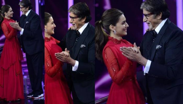 Amitabh Bachchan can is seen dressed in smart formals. Whereas Kriti Sanon is wearing a lovely full-length red gown and earrings. Needless, to say that the picture made us skip a beat.