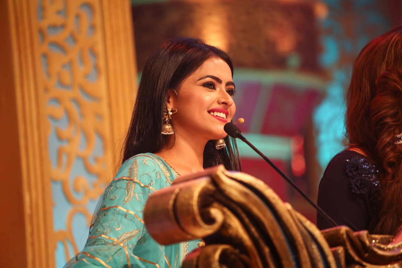 Our new host for "Punjab De Superchef Season 2" Amrita Raichand enjoying the event. We could her happiness in her smiles. She is looking very beautiful in her black gown.