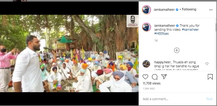 ਦਿਲਜੀਤ ਨੇ ਟਵੀਟ ਕਰਦਿਆਂ ਲਿਖਿਆ 'ਕਿਸਾਨ ਬਚਾਓ ਦੇਸ਼ ਬਚਾਓ। ਉਨ੍ਹਾਂ ਲਿਖਿਆ ਕਿ ਕਿਸਾਨ ਵਿਰੋਧੀ ਬਿੱਲ ਦਾ ਅਸੀਂ ਸਾਰੇ ਵਿਰੋਧ ਕਰਦੇ ਹਾਂ।' ਦਿਲਜੀਤ ਵਾਂਗ ਗਾਇਕ ਕਮਲ ਹੀਰ ਨੇ ਕਿਸਾਨਾਂ ਦੇ ਹੱਕ ਵਿੱਚ ਆਵਾਜ਼ ਬੁਲੰਦ ਕੀਤੀ ਹੈ । ਉਹਨਾਂ ਨੇ ਆਪਣੇ ਸੋਸ਼ਲ ਮੀਡੀਆ ਅਕਾਊਂਟ ਤੇ ਇੱਕ ਵੀਡੀਓ ਸਾਂਝਾ ਕੀਤਾ ਹੈ, ਜਿਸ ਵਿੱਚ ਕਿਸਾਨ ਸ਼ੰਘਰਸ ਕਰਦੇ ਹੋਏ ਦਿਖਾਈ ਦੇ ਰਹੇਨ ਹਨ ।