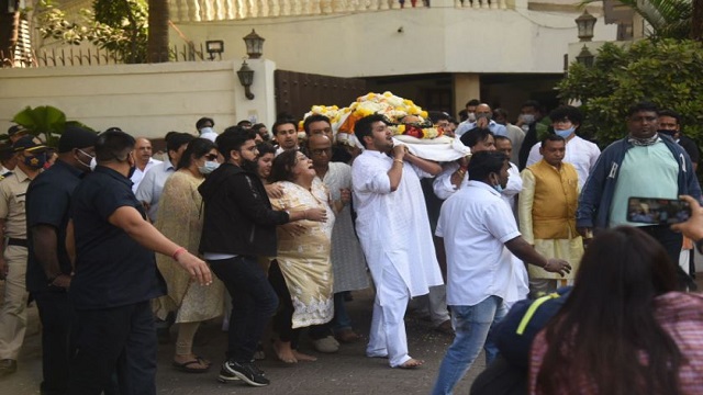 Mortal remains of veteran singer #BappiLahiri being carried to Vile Parle crematorium in Mumbai pic.twitter.com/H1X4TL1yEy