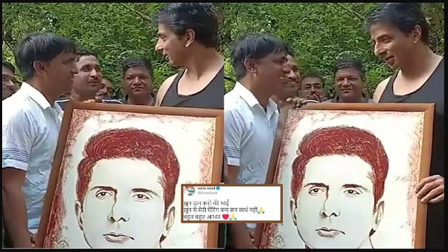 ਹੁਣ ਹਾਲ ਹੀ 'ਚ ਇੱਕ ਫੈਨ ਸੋਨੂੰ ਸੂਦ ਨੂੰ ਮਿਲਣ ਉਨ੍ਹਾਂ ਦੇ ਘਰ ਪਹੁੰਚਿਆ। ਇਸ ਦੌਰਾਨ ਉਸ ਨੇ ਸੋਨੂੰ ਸੂਦ ਨੂੰ ਇੱਕ ਖ਼ਾਸ ਤੋਹਫਾ ਵੀ ਦਿੱਤਾ। ਇਹ ਤੋਹਫਾ ਇੱਕ ਪੇਟਿੰਗ ਸੀ, ਅਜਿਹਾ ਤੋਹਫਾ ਵੇਖ ਕੇ ਕੁਝ ਸਮੇਂ ਲਈ ਸੋਨੂੰ ਸੂਦ ਖ਼ੁਦ ਵੀ ਹੈਰਾਨ ਰਹਿ ਗਏ। ਦਰਅਸਲ, ਉਸ ਫੈਨ ਵੱਲੋਂ ਲਿਆਂਦੀ ਗਈ ਪੇਂਟਿੰਗ ਕੋਈ ਆਮ ਪੇਂਟਿੰਗ ਨਹੀਂ ਸੀ। ਇਹ ਪੇਂਟਿੰਗ ਉਸ ਫੈਨ ਨੇ ਖ਼ੁਦ ਆਪਣੇ ਖੂਨ ਨਾਲ ਤਿਆਰ ਕੀਤੀ ਸੀ। ਫੈਨ ਨੇ ਸੋਨੂੰ ਨੂੰ ਮਿਲ ਕੇ ਕਿਹਾ ਕਿ ਉਹ ਸੋਨੂੰ ਲਈ ਆਪਣੀ ਜਾਨ ਵੀ ਦੇ ਸਕਦੇ ਹੈ।
