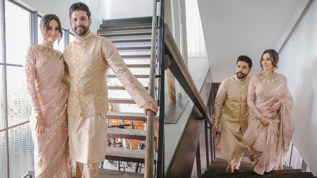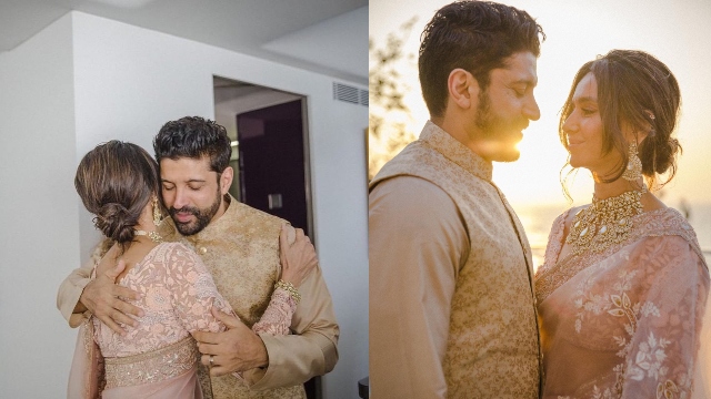 For the registration wedding, Farhan Akhtar wore a golden Sabyasachi Mukerji sherwani, while Shibani Dandekar wore an Anamika Khanna pastel saree. In the new photographs, the two can be seen spending some precious moments on the rooftop during golden hour, and each one will make your heart melt.