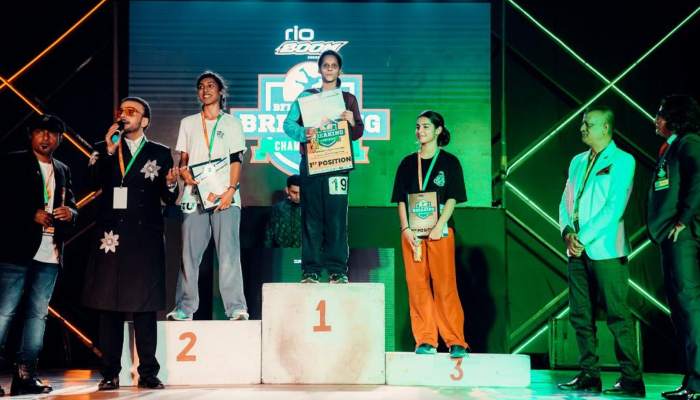 In the B-Boys category, Mumbai breakers Wildchild, Flying Machine, and Tornado won gold, silver, and bronze, respectively. In the women's category, B-Girls Barbie , Rio and Glib won gold, silver, and bronze.