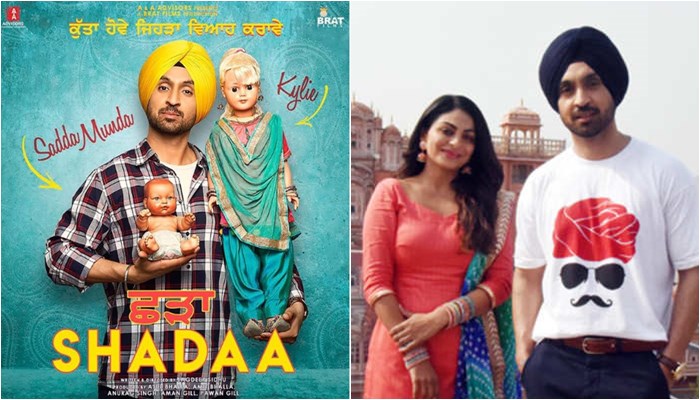 The first look poster of Shadaa surprises by taking Diljit Dosanjh’s fascination with international superstar Kylie Jenner to the next level, we see our simple Desi Punjabi Shadaa holding a plastic doll named “Kylie" and their child “Sadda Munda.”