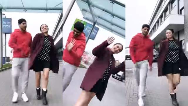 Neeru Bajwa can be seen wearing a Polka dot dress along with a maroon overcoat whereas Gurnam wore a red sweatshirt along with grey track pants.