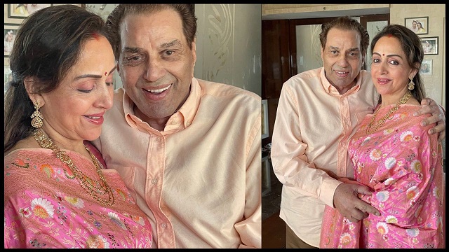 ਹੇਮਾ ਮਾਲਿਨੀ ਨੇ ਪਤੀ ਧਰਮਿੰਦਰ ਨਾਲ ਆਪਣੀਆਂ ਕੁਝ ਯਾਦਗਾਰੀ ਤਸਵੀਰਾਂ ਸੋਸ਼ਲ ਮੀਡੀਆ 'ਤੇ ਸ਼ੇਅਰ ਕੀਤੀਆਂ ਹਨ ਅਤੇ ਖਾਸ ਸੰਦੇਸ਼ ਲਿਖ ਕੇ ਉਨ੍ਹਾਂ ਨੂੰ ਜਨਮਦਿਨ ਦੀ ਵਧਾਈ ਦਿੱਤੀ ਹੈ। ਹੇਮਾ ਨੇ ਆਪਣੇ ਟਵਿਟਰ ਅਕਾਊਂਟ 'ਤੇ ਆਪਣੀਆਂ ਅਤੇ ਧਰਮਿੰਦਰ ਦੀਆਂ ਦੋ ਤਸਵੀਰਾਂ ਸ਼ੇਅਰ ਕੀਤੀਆਂ ਹਨ। ਇਨ੍ਹਾਂ ਤਸਵੀਰਾਂ 'ਚ ਦੋਵੇਂ ਇਕੱਠੇ ਕਾਫੀ ਖੂਬਸੂਰਤ ਲੱਗ ਰਹੇ ਹਨ। ਦੋਵਾਂ ਨੇ ਮੈਚਿੰਗ ਰੰਗ ਦੇ ਕੱਪੜੇ ਪਾਏ ਹੋਏ ਹਨ। ਇਕ ਪਾਸੇ ਜਿੱਥੇ ਧਰਮਿੰਦਰ ਨੇ ਗੁਲਾਬੀ ਰੰਗ ਦੀ ਕਮੀਜ਼ ਪਾਈ ਹੋਈ ਹੈ, ਉਥੇ ਹੀ ਹੇਮਾ ਮਾਲਿਨੀ ਵੀ ਗੁਲਾਬੀ ਰੰਗ ਦੀ ਸਾੜ੍ਹੀ 'ਚ ਬੇਹੱਦ ਖੂਬਸੂਰਤ ਨਜ਼ਰ ਆ ਰਹੀ ਹੈ।