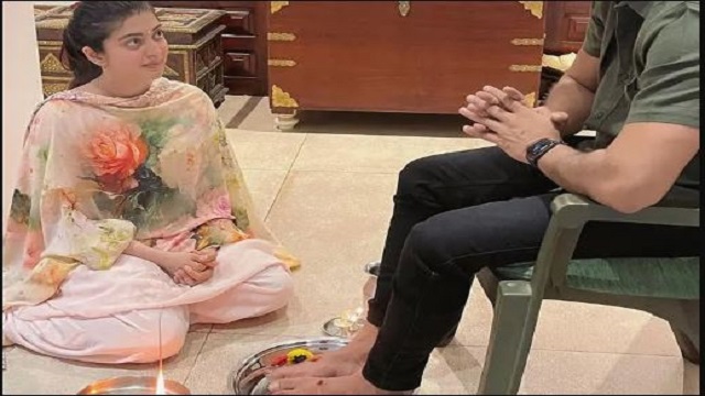 ਮਾਮਲਾ ਅਸਲ 'ਚ ਇਹ ਹੈ ਕਿ ਅਦਾਕਾਰਾ ਨੇ ਸਾਊਥ ਰੀਤੀ ਰਿਵਾਜ਼ਾਂ ਮੁਤਾਬਕ 'ਭੀਮ ਅਮਾਵਸਿਆ' ਦੇ ਦਿਨ ਆਪਣੇ ਪਤੀ ਦੇ ਚਰਨਾਂ 'ਚ ਪੂਜਾ ਕੀਤੀ ਅਤੇ ਫਿਰ ਇਹ ਤਸਵੀਰਾਂ ਸੋਸ਼ਲ ਮੀਡੀਆ 'ਤੇ ਫੈਨਜ਼ ਨਾਲ ਸ਼ੇਅਰ ਕੀਤੀਆਂ। ਹੁਣ ਕੁਝ ਲੋਕ ਅਭਿਨੇਤਰੀ ਨੂੰ ਇਸ ਤਰ੍ਹਾਂ ਆਪਣੇ ਪਤੀ ਦੇ ਪੈਰਾਂ 'ਤੇ ਬੈਠੇ ਦੇਖ ਕੇ ਸਮਝ ਨਹੀਂ ਸਕੇ ਹਨ ਅਤੇ ਉਹ ਉਸ ਨੂੰ ਟ੍ਰੋਲ ਕਰਨ ਲੱਗ ਪਏ।
