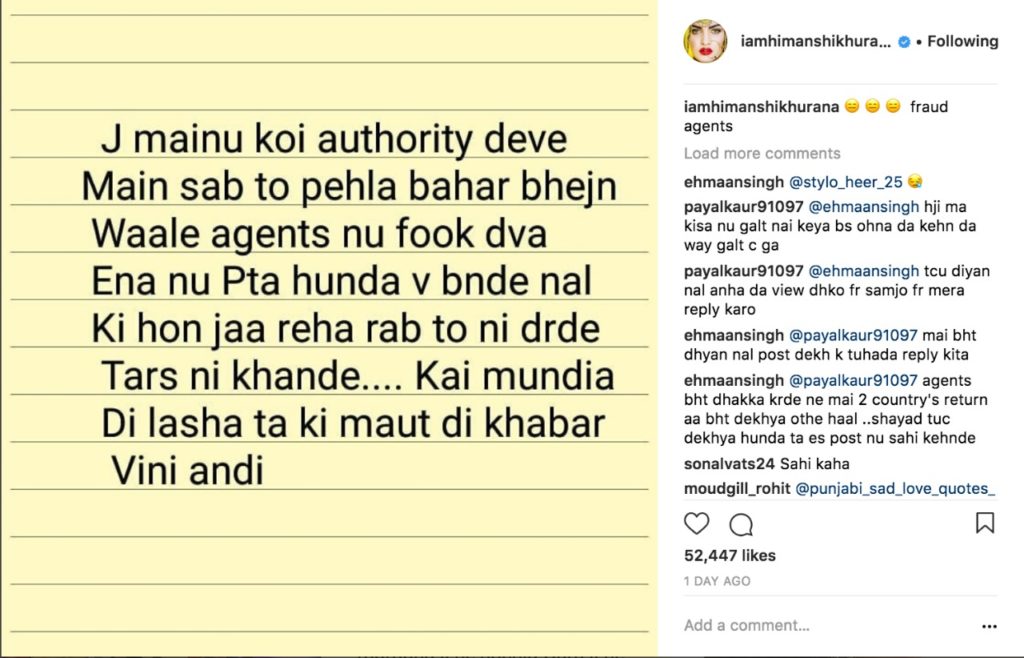 Himanshi Khurana latest social post about the fraud travel agencies has brought her into the limelight. Himanshi shared a post on her social networking platforms and showed her anger towards the travel agencies who are playing frauds with the innocent young boys and girls. These fraudsters not only send them abroad with fake promises but also not even care for their work, future and families back in their home countries.
