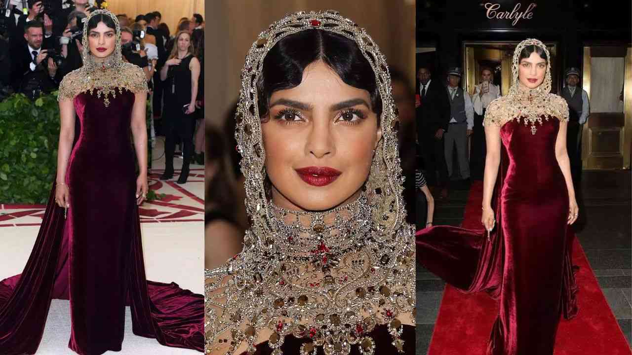 Priyanka Chopra - Global icon PeeCee is one of the most renown Indian fame on Met every year. It was in 2018 when Priyanka Chopra gave one of her most iconic moments at the red carpet. Turning into the theme of heavenly bodies, Chopra opted a breathtaking Ralph Lauren velvet burgundy gown with a matching train. But what was more captivating was her bejeweled hood embedded with gold beads and red Swarovski crystals.