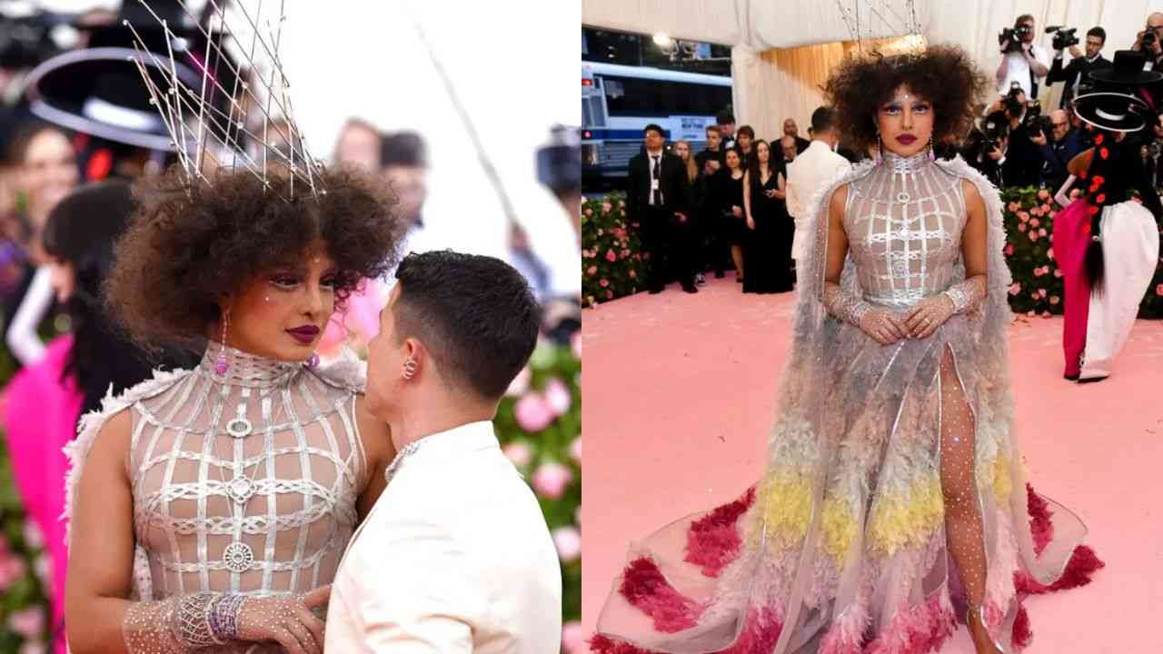 Priyanka Chopra - The same year in 2019, PeeCee made it to the headlines when she took the theme of Camp a notch higher. The actress reached the camp carpet accompanied by her husband Nick Jonas wearing a caged dress by Dior. Featuring feathers and a long train, what struck people more was her avante-garde hair and makeup look that made it to the hot meme topic. But however, pulling such a dramatic look was one of the most daring choice an actress has ever pulled off. A true icon!
