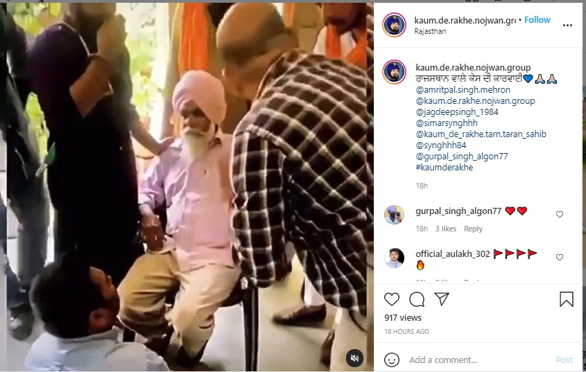 ਰਾਜਸਥਾਨ (Rajasthan) ਵਿੱਚ ਇੱਕ ਬਜ਼ੁਰਗ ਦੀ ਦਸਤਾਰ (Turban ) ਦੀ ਬੇਅਦਬੀ ਕਰਨ ਵਾਲਿਆਂ ਨੇ ਆਪਣੇ ਗੁਨਾਹ ਲਈ ਬਜ਼ੁਰਗ ਤੋਂ ਮੁਆਫੀ ਮੰਗ ਲਈ ਹੈ । ਜਿਸ ਦੀ ਜਾਣਕਾਰੀ ਸਮਾਜ ਸੇਵਕ ਅੰਮ੍ਰਿਤਪਾਲ ਸਿੰਘ ਨੇ ਸੋਸ਼ਲ ਮੀਡੀਆ ਤੇ ਦਿੱਤੀ ਹੈ । ਅੰਮ੍ਰਿਤਪਾਲ ਸਿੰਘ ਸਿੱਖ ਜੱਥੇਬੰਦੀ ‘ਕੌਮ ਦੇ ਰਾਖੇ’ ਦੇ ਮੈਂਬਰ ਹਨ । ਇਸ ਸਭ ਦੇ ਚੱਲਦੇ ਅੰਮ੍ਰਿਤਪਾਲ ਸਿੰਘ ਨੇ ਸੋਸ਼ਲ ਮੀਡੀਆ ਤੇ ਦੱਸਿਆ ਹੈ ਕਿ ਜਿਨ੍ਹਾਂ ਲੋਕਾਂ ਨੇ ਬਜ਼ੁਰਗ ਦੀ ਕੁੱਟਮਾਰ ਕੀਤੀ ਸੀ ।