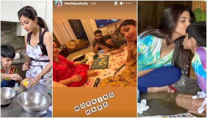 In this video, Shilpa and Viaan can be seen to having a slime fight. Other than this clip, Shilpa also shared a picture on her Instagram story in which Shilpa was seen 'working hard' with her husband, son and mother while playing scrabble.
