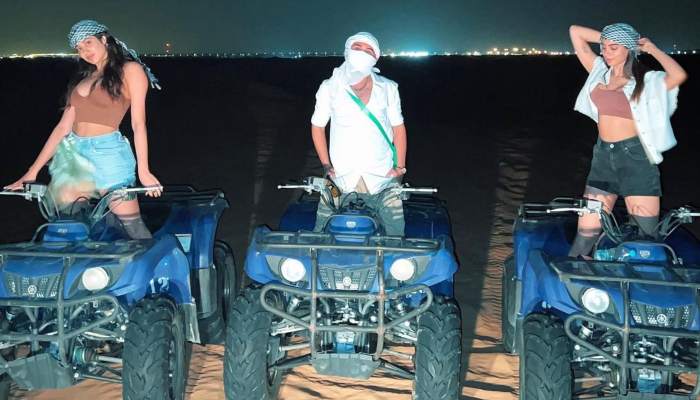 Janhvi and Khushi Kapoor posed for a glamorous photoshoot in the desert before embarking on an all-terrain vehicle (ATV) ride. Orhan Awatramani, a friend of theirs, joined them. The three are currently in Dubai on vacation.