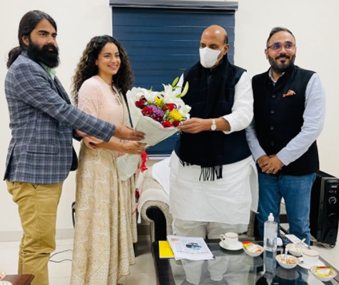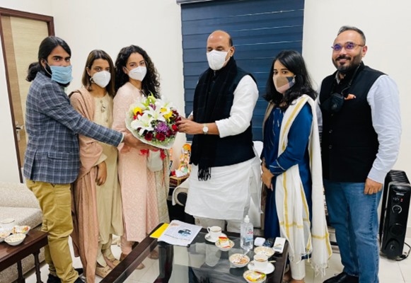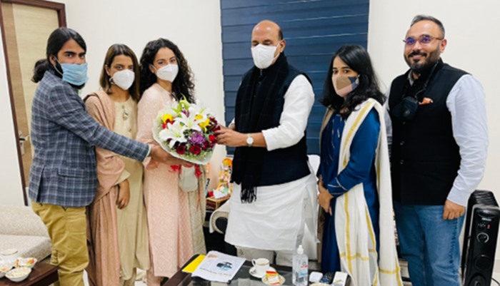 Bollywood ‘Queen’ Kangana Ranaut, along with the team of her upcoming film ‘Tejas’, met the defence minister Rajnath Singh to seek his blessings for the film.