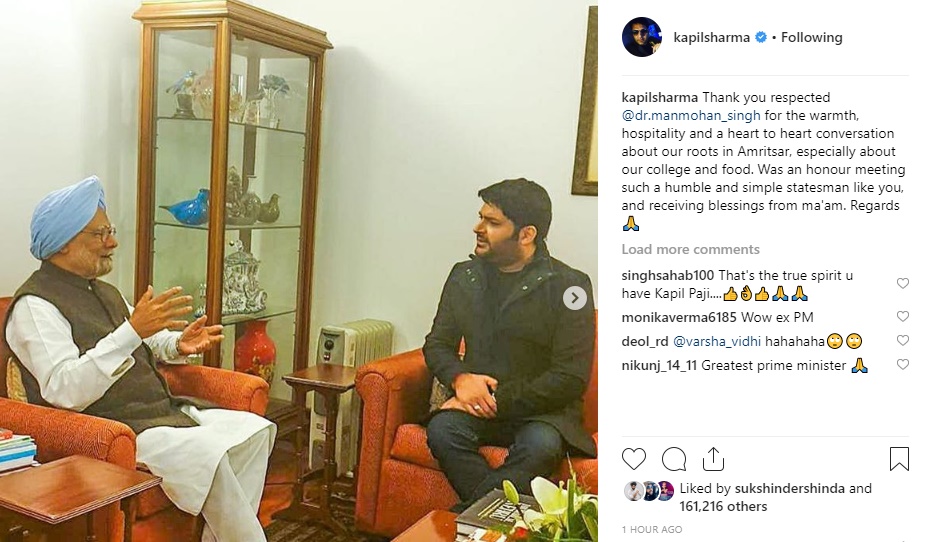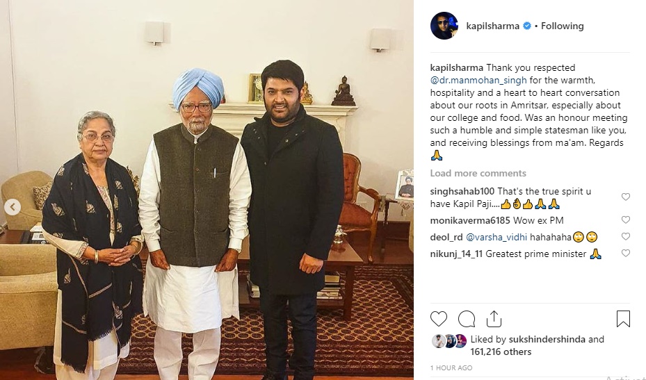 Sharing the picture on Instagram, the comedian revealed that he had a 'heart to heart conversation' about their roots in Amritsar with former PM. Kapil Sharma further opened up about how he and Dr Manmohan Singh studied from the same college.