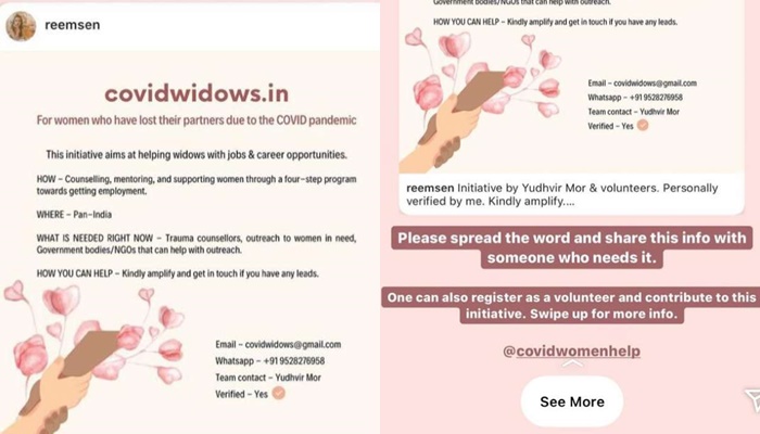 ਕਰੀਨਾ ਨੇ ਆਪਣੇ ਇੰਸਟਾਗ੍ਰਾਮ ਤੇ ਇੱਕ ਪੋਸਟ ਪਾਈ ਹੈ ਜਿਸ ਵਿੱਚ ਉਹਨਾਂ ਨੇ ਦੱਸਿਆ ਹੈ ਕਿ ਕੋਰੋਨਾ ਵਾਇਰਸ ਕਰਕੇ ਵਿਧਵਾ ਹੋਈਆਂ ਔਰਤਾਂ ਕੰਮ ਲੱਭ ਸਕਦੀਆਂ ਹਨ । ਕਰੀਨਾ ਨੇ ਦੱਸਿਆ ਹੈ ਕਿ ਕੋਈ ਵੀ ਇਸ ਸੰਸਥਾ ਨਾਲ ਜੁੜ ਸਕਦਾ ਹੈ ਤੇ ਵਲੰਟੀਅਰ ਦੇ ਰੂਪ ਵਿੱਚ ਕੰਮ ਕਰ ਸਕਦਾ ਹੈ ।