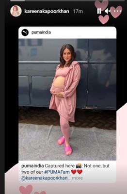 Kareena has shared a beautiful picture of herself showing her baby bump in all the natural essence as she poses for Puma.