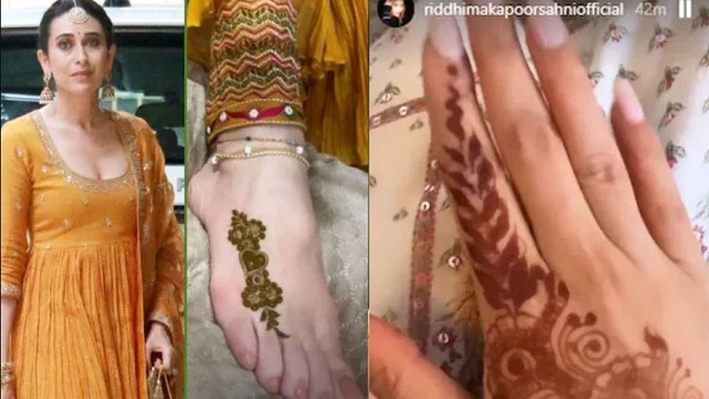 ਹੁਣ ਕਰਿਸ਼ਮਾ ਨੇ ਰਣਬੀਰ-ਆਲੀਆ ਦੀ ਮਹਿੰਦੀ ਸੈਰੇਮਨੀ ਤੋਂ ਬਾਅਦ ਇੱਕ ਤਸਵੀਰ ਸ਼ੇਅਰ ਕੀਤੀ ਹੈ। ਕਰਿਸ਼ਮਾ ਦੇ ਨਾਲ-ਨਾਲ ਰਣਬੀਰ ਕਪੂਰ ਦੀ ਭੈਣ ਰਿਧਿਮਾ ਕਪੂਰ ਨੇ ਵੀ ਆਪਣੇ ਇੰਸਟਾਗ੍ਰਾਮ ਸਟੋਰੀ ਉੱਤੇ ਤਸਵੀਰ ਸ਼ੇਅਰ ਕੀਤੀ ਹੈ। ਆਪੋ ਆਪਣੀ ਇੰਸਟਾ ਸਟੋਰੀ ਦੇ ਵਿੱਚ ਦੋਵੇਂ ਭੈਣਾਂ ਆਪਣੇ ਹੱਥਾਂ ਤੇ ਪੈਰਾਂ 'ਤੇ ਲੱਗੀ ਹੋਈ ਮਹਿੰਦੀ ਵਿਖਾਉਂਦੇ ਹੋਏ ਨਜ਼ਰ ਆ ਰਹੀਆਂ ਹਨ।