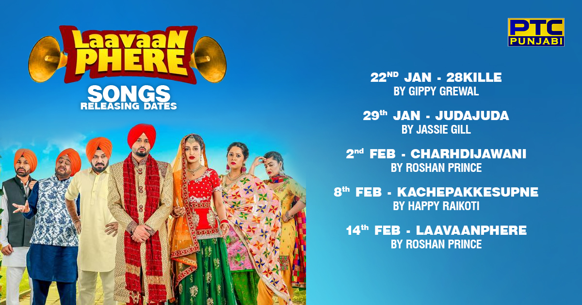 22 ਜਨਵਰੀ ਨੂੰ ਰਿਲੀਜ਼ ਹੋਵੇਗਾ ਗਿੱਪੀ ਗਰੇਵਾਲ ਦਾ ਗਾਇਆ "28 ਕਿੱਲ੍ਹੇ" | 29 ਜਨਵਰੀ ਨੂੰ ਰਿਲੀਜ਼ ਹੋਵੇਗਾ ਜੱਸੀ ਗਿਲ ਦਾ "ਜੁਦਾ-ਜੁਦਾ" | 2 ਫਰਵਰੀ ਨੂੰ ਰਿਲੀਜ਼ ਹੋਵੇਗਾ "ਚੜੀ ਜਵਾਨੀ" ਜੋ ਕਿ ਖੁਦ ਰੋਸ਼ਨ ਪ੍ਰਿੰਸ ਨੇ ਹੀ ਗਾਇਆ | 8 ਫਰਵਰੀ ਨੂੰ ਹੈਪ੍ਪੀ ਰਾਏਕੋਟੀ ਦਾ "ਕੱਚੇ ਪੱਕੇ ਸੁਪਨੇ" ਰਿਲੀਜ਼ ਹੋਵੇਗਾ ਤੇ ਸੱਭ ਤੋਂ ਆਖ਼ਿਰ ਵਿਚ ਰਿਲੀਜ਼ ਹੋਵੇਗਾ ਲਾਵਾਂ ਫੇਰੇ ਦਾ ਟਾਈਟਲ ਟਰੈਕ ਜੋ ਕਿ ਖੁਦ ਰੋਸ਼ਨ ਪ੍ਰਿੰਸ Roshan Prince ਨੇ ਹੀ ਗਾਇਆ ਹੈ | ਇਸਲਈ ਸਾਰੀਆਂ ਤਰੀਕਾਂ ਕਰ ਲਓ ਨੋਟ ਤੇ ਹਰ ਤਾਰੀਕ ਦੇ ਹਿੱਸਾਬ ਨਾਲ PTC Punjabi ਤੇ PTC Chakde ਲਗਾ ਕੇ ਟੈਲੀਵਿਜ਼ਨ ਦੇ ਸਾਹਮਣੇ ਬੈਠ ਜਾਣਾ |