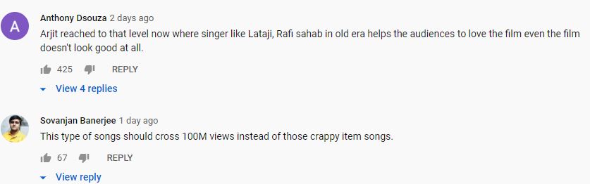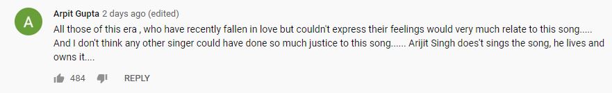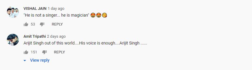 While one of them wrote: ‘He Is Not A Singer, He Is Magician’, the other wrote ‘All those of this era , who have recently fallen in love but couldn't express their feelings would very much relate to this song..... And I don't think any other singer could have done so much justice to this song...... Arijit Singh does't sings the song, he lives and owns it....’