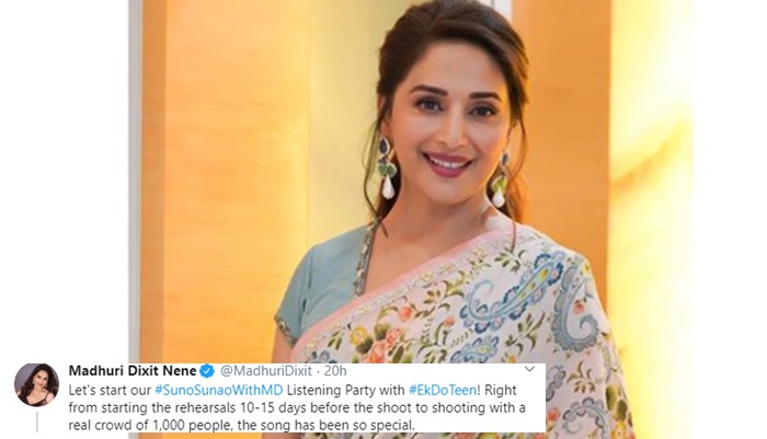 Madhuri took to her Twitter handle to reveal that her song ‘EK Do Teen’ was shot with a real crowd of 1000 people and the song’s rehersals began 10-15 days before the shoot.
