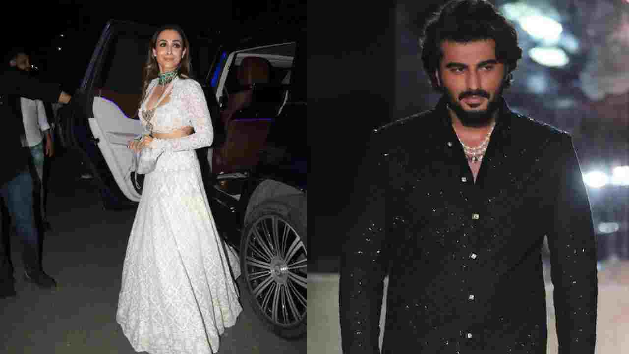 For the event, Malaika graced the evening in an ivory embellished lehenga with a green emerald chocker and a pearl necklace. Arjun Kapoor, on the other hand, donned a black shimmer Indian attire.
