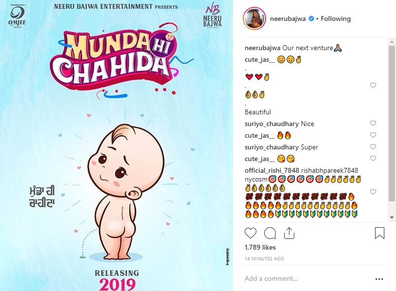 Pollywood actress-producer-director Neeru Bajwa has shared the first look poster of her upcoming venture ‘Munda Hi Chahida’ on her official Instagram account. From the first look poster, it seems movie is going to be a laugh riot.
