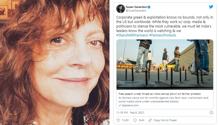 ਆਸਕਰ ਅਵਾਰਡ ਜੇਤੂ ਅਦਾਕਾਰਾ ਸੁਜ਼ੈਨ ਸਰੈਂਡਨ ਨੇ ਕਿਸਾਨਾਂ ਦਾ ਕੀਤਾ ਸਮਰਥਨ, ਸਰਕਾਰ ਤੇ ਕਾਰਪੋਰੇਟ ਘਰਾਣਿਆਂ ਨੂੰ ਲਿਆ ਲੰਮੇ ਹੱਥੀਂ