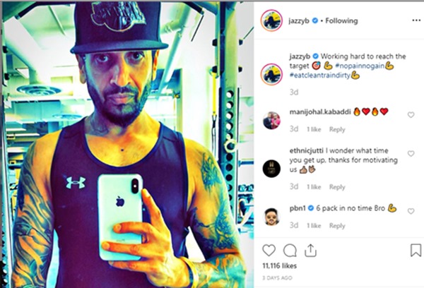 Jazzy B follows strict routine to keep himself fit. He wakes up at around 4 in the morning and he hits the gym at 6 on regular basis.