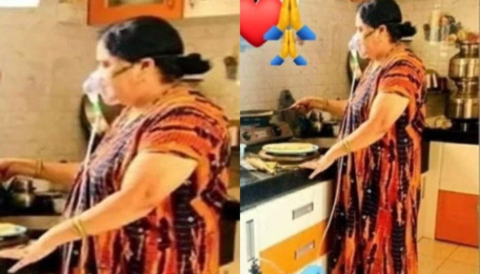 ਮਾਂ ਦੇ ਪੈਰਾਂ ‘ਚ ਜੰਨਤ ਦਾ ਵਾਸ ਹੁੰਦਾ ਹੈ । ਮਾਂ ਭਾਵੇਂ ਖੁਦ ਕਿੰਨੀ ਵੀ ਤਕਲੀਫ ‘ਚ ਕਿਉੇਂ ਨਾਂ ਹੋਵੇ ਉਹ ਹਰ ਪ੍ਰੇਸ਼ਾਨੀ ਨੂੰ ਭੁੱਲ ਜਾਂਦੀ ਹੈ । ਸੋਸ਼ਲ ਮੀਡੀਆ ‘ਤੇ ਇੱਕ ਤਸਵੀਰ ਵਾਇਰਲ ਹੋ ਰਹੀ ਹੈ ।ਜਿਸ ‘ਚ ਇੱਕ ਮਾਂ ਜਿਸ ਦੇ ਮੂੰਹ ‘ਤੇ ਆਕਸੀਜਨ ਲੱਗੀ ਹੋਈ ਹੈ । ਪਰ ਇਸ ਦੇ ਬਾਵਜੂਦ ਉਹ ਆਪਣੇ ਪਰਿਵਾਰ ਦੇ ਲਈ ਖਾਣਾ ਬਣਾਉਂਦੀ ਹੋਈ ਨਜ਼ਰ ਆ ਰਹੀ ਹੈ ।