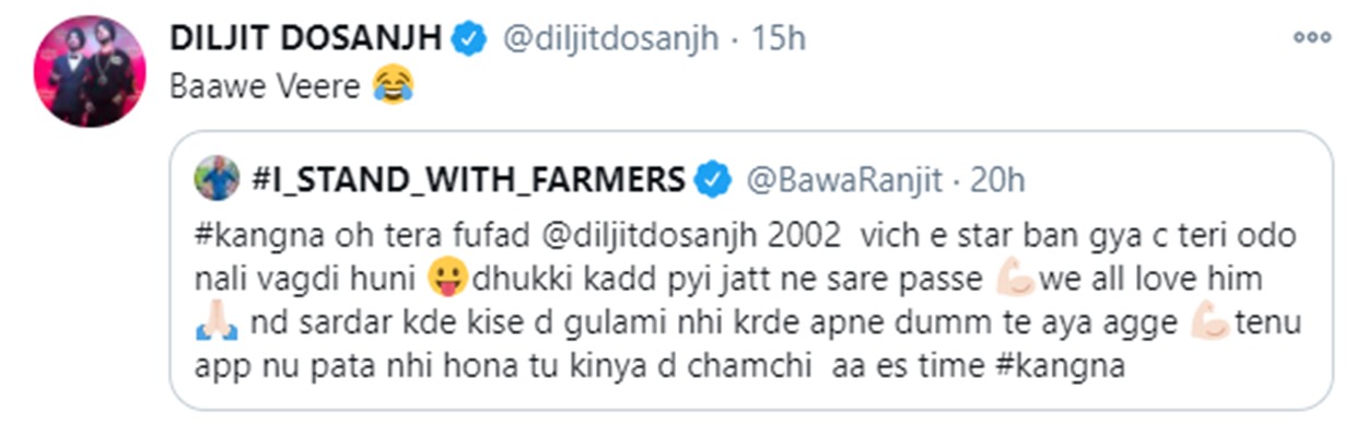 There has been a tough feud between Kangana Ranaut and Diljit Dosanjh owing to the ongoing farmers’ protest in Delhi.