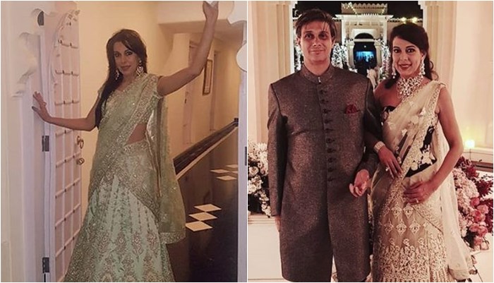 Pooja Bedia shared a picture in which she is seen holding a hand of her beau. She captioned the image as: "Fairy tale....thats what happens when @farahkhanali and @libasindia @libasreshmariyaz dress us up !!!"