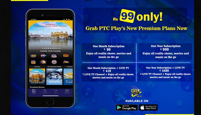 PTC Network’s official app, PTC Play has introduced new plans for its valuable viewers and followers. Now, you can watch Gurbani from Sri Harmandir Sahib live, latest Punjabi movies, exclusive Punjabi songs, reality shows, real-time live news and much more on PTC Play app with plans starting from as low as Rs 99!