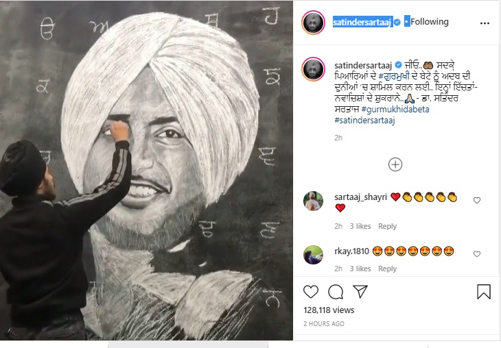 ਇਸ ਵੀਡੀਓ ਨੂੰ ਸਾਂਝਾ ਕਰਦੇ ਹੋਏ ਸਰਤਾਜ ਨੇ ਲਿਖਿਆ ਹੈ ‘ਜੀਓ ਸਦਕੇ ਪਿਆਰਿਆਂ ਦੇ ….ਗੁਰਮੁਖੀ ਦੇ ਬੇਟੇ ਨੂੰ ਅਦਬ ਦੀ ਦੁਨੀਆਂ ਵਿੱਚ ਸ਼ਾਮਿਲ ਕਰਨ ਲਈ …ਇਹਨਾਂ ਇੱਜ਼ਤਾਂ ਨਵਾਜ਼ਿਸ਼ਾਂ ਦੇ ਸ਼ੁਕਰਾਨੇ ਡਾ. ਸਤਿੰਦਰ ਸਰਤਾਜ’ । ਸਰਤਾਜ਼ ਦੀ ਇਸ ਵੀਡੀਓ ਤੇ ਉਹਨਾਂ ਦੇ ਪ੍ਰਸ਼ੰਸਕਾਂ ਵੱਲੋਂ ਖੂਬ ਕਮੈਂਟ ਕੀਤੇ ਜਾ ਰਹੇ ਹਨ । ਇਸ ਵੀਡੀਓ ਨੂੰ ਖੂਬ ਪਸੰਦ ਵੀ ਕੀਤਾ ਜਾ ਰਿਹਾ ਹੈ ।