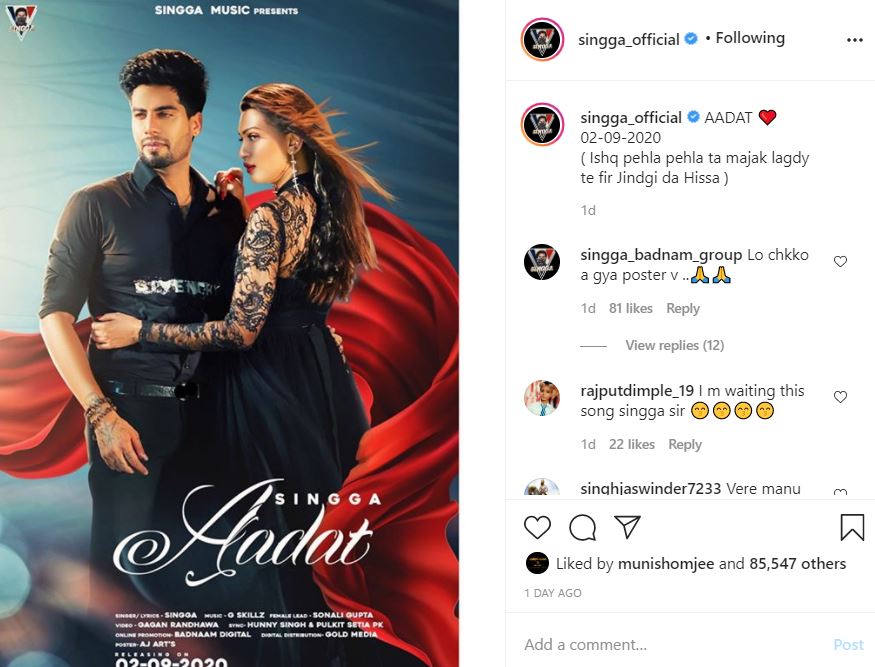ਸਿੰਗਾ ਦਾ ਆਉਣ ਵਾਲਾ ਨਵਾਂ ਗੀਤ ਆਦਤ (AADAT) ਦਾ ਟੀਜ਼ਰ ਦਰਸ਼ਕਾਂ ਦੇ ਰੁਬਰੂ ਹੋ ਗਿਆ ਹੈ । 43ਸੈਕਿੰਡ ਦਾ ਰੋਮਾਂਟਿਕ ਟੀਜ਼ਰ ਦਰਸ਼ਕਾਂ ਨੂੰ ਖੂਬ ਪਸੰਦ ਆ ਰਿਹਾ ਹੈ ।