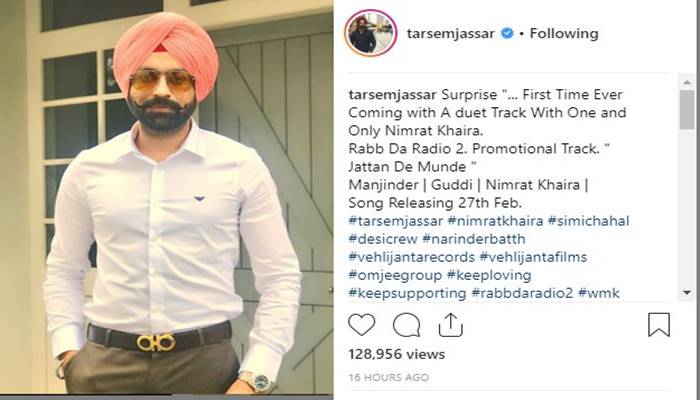 ਪੰਜਾਬੀ ਗਾਇਕ ਤੇ ਅਦਾਕਾਰ ਤਰਸੇਮ ਜੱਸੜ ਜਿਹਨਾਂ ਨੇ ਇੱਕ ਵੀਡੀਓ ਪਾ ਕੇ ਆਪਣੇ ਫੈਨਜ਼ ਨੂੰ ਸਰਪ੍ਰਾਈਜ਼ ਕਰ ਦਿੱਤਾ ਹੈ। ਜੀ ਹਾਂ, ਇਹ ਜਾਣਕਾਰੀ ਤਰਸੇਮ ਜੱਸੜ ਨੇ ਆਪਣੇ ਇੰਸਟਾਗ੍ਰਾਮ ਅਕਾਊਂਟ ਉੱਤੇ ਵੀਡੀਓ ਪਾ ਕੇ ਦਿੱਤੀ ਹੈ, ਨਾਲ ਹੀ ਉਹਨਾਂ ਨੇ ਕੈਪਸ਼ਨ ‘ਚ ਲਿਖਿਆ ਹੈ, ‘ਸਰਪ੍ਰਾਈਜ਼”… ਪਹਿਲੀ ਵਾਰ ਡਿਊਟ ਸੌਂਗ ਵਿਦ ਵਨ ਐਂਡ ਓਨਲੀ ਨਿਮਰਤ ਖੈਰਾ ਨਾਲ..