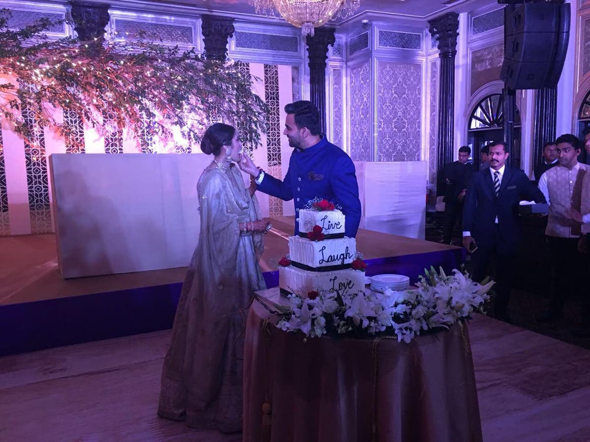 The very beautiful cake with a nice message was cut by the couple. It was as grand as the Reception Party. Many of the guests in the party tweeted their pictures from the party.