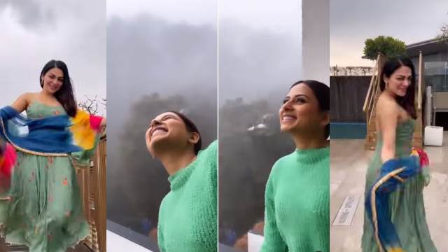 Sargun Mehta shared a video in which she was seen enjoying the rain from the balcony. With a wide lovely smile on her face, she is savoring nature's beauty. Sargun Mehta also added the song 'Hututu' from Kriti Sanon's film 'Mimi'.