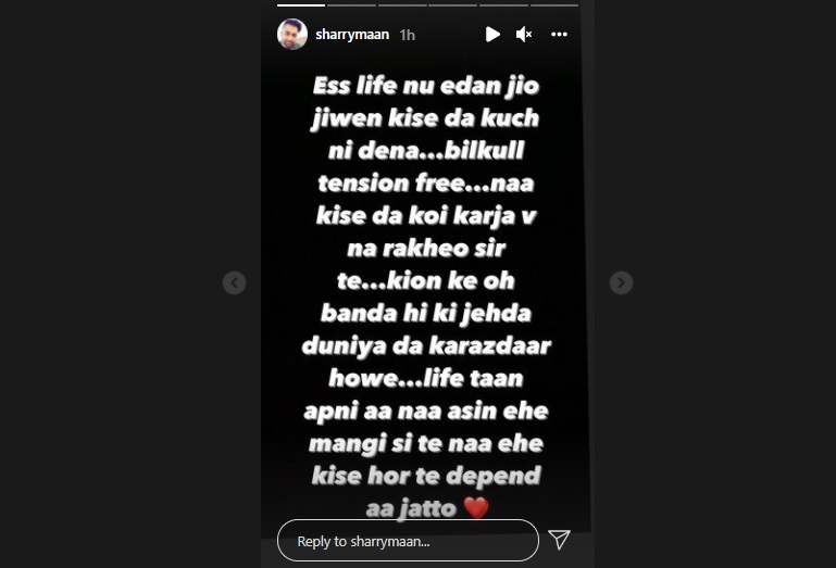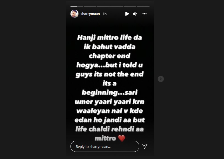 ਪਰਮੀਸ਼ ਵਰਮਾ (Parmish Verma/ Sharry Maan ) ਤੇ ਉਹਨਾਂ ਦੇ ਦੋਸਤ ਸ਼ੈਰੀ ਮਾਨ ਵਿਚਾਲੇ ਸ਼ੁਰੂ ਹੋਇਆ ਵਿਵਾਦ (Wedding Controversy) ਰੁਕਣ ਦਾ ਨਾਂਅ ਨਹੀਂ ਲੈ ਰਿਹਾ । ਦੋਵੇਂ ਗਾਇਕ ਸੋਸ਼ਲ ਮੀਡੀਆ ਤੇ ਇੱਕ ਦੂਜੇ ‘ਤੇ ਭੜਾਸ ਕੱਢ ਰਹੇ ਹਨ । ਹਾਲ ਹੀ ਵਿੱਚ ਸ਼ੈਰੀ ਮਾਨ ਨੇ ਆਪਣੇ ਇੰਸਟਾਗ੍ਰਾਮ ਤੇ ਇੱਕ ਸਟੋਰੀ ਸਾਂਝੀ ਕਰਕੇ ਪਰਮੀਸ਼ ਵਰਮਾ ਨਾਲ ਯਾਰੀ ਨੂੰ ਖਤਮ ਕੀਤਾ ਹੈ । ਸ਼ੈਰੀ ਨੇ ਆਪਣੀ ਸਟੋਰੀ ਵਿੱਚ ਲਿਖਿਆ ਹੈ ‘ਹਾਂ ਜੀ ਮਿੱਤਰੋ ਲਾਈਫ ਦਾ ਬਹੁਤ ਵੱਡਾ ਚੈਪਟਰ ਐਂਡ ਹੋ ਗਿਆ ….ਪਰ ਮੈਂ ਤੁਹਾਨੂੰ ਕਹਿੰਦਾ ਹਾਂ ਕਿ ਇਹ ਐਂਡ ਨਹੀਂ ..ਇਹ ਤਾਂ ਹਾਲੇ ਸ਼ੁਰੂ ਹੋਇਆ ..ਸਾਰੀ ਉਮਰ ਯਾਰੀ ਯਾਰੀ ਕਹਿਣ ਵਾਲਿਆਂ ਨਾਲ ਵੀ ਕਦੇ ਇਸ ਤਰ੍ਹਾਂ ਹੋ ਜਾਂਦੀ ਹੈ ਪਰ ਜ਼ਿੰਦਗੀ ਚਲਦੀ ਰਹਿੰਦੀ ਹੈ ਮਿੱਤਰੋ …ਇਸ ਜ਼ਿੰਦਗੀ ਨੂੰ ਇਸ ਤਰ੍ਹਾਂ ਜਿਓ ਜਿਵੇਂ ਤੁਸੀ ਕਿਸੇ ਦਾ ਕੁਝ ਨਹੀਂ ਦੇਣਾ …ਬਿਲਕੁਲ ਟੈਂਸ਼ਨ ਫਰੀ …ਨਾ ਕਿਸੇ ਦਾ ਕਰਜ਼ ਰੱਖਿਓ ਸਿਰ ਤੇ …ਕਿਉਂਕਿ ਉਹ ਬੰਦਾ ਹੀ ਕਿ ਜਿਹੜਾ ਦੁਨੀਆ ਦਾ ਕਰਜ਼ਦਾਰ ਹੋਵੇ …ਜ਼ਿੰਦਗੀ ਤਾਂ ਆਪਣੀ ਆ ਨਾ ਅਸੀਂ ਇਹ ਮੰਗੀ ਸੀ ।