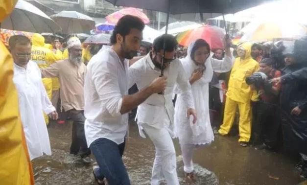After expressing his on his blog, Amitabh Bachchan attended the funeral with his son Abhishek Bachchan.