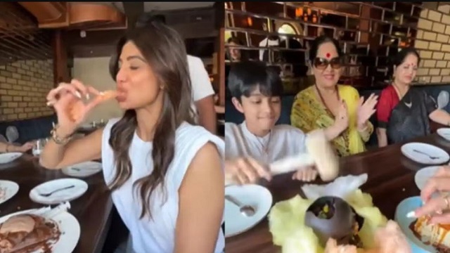 ਦਰਅਸਲ, ਅਭਿਨੇਤਰੀ ਐਤਵਾਰ ਦੀ ਛੁੱਟੀ 'ਤੇ ਆਪਣੇ ਰੈਸਟੋਰੈਂਟ ਬੈਸਟਨ ਪਹੁੰਚੀ ਸੀ। ਵੀਡੀਓ 'ਚ ਅਭਿਨੇਤਰੀ ਨੂੰ ਸਵਾਦਿਸ਼ਟ ਰੇਗਿਸਤਾਨ ਦੀ ਪ੍ਰਸ਼ੰਸਾ ਕਰਦੇ ਦੇਖਿਆ ਜਾ ਸਕਦਾ ਹੈ। ਸ਼ਿਲਪਾ ਕੁਝ ਮਿੱਠੇ ਭੋਜਨ ਲੈਂਦੀ ਹੈ ਜਦੋਂ ਕਿ ਵਿਆਨ, ਆਪਣੀ ਨਾਨੀ ਸੁਨੰਦਾ ਦੇ ਕੋਲ ਬੈਠਾ, ਹਥੌੜੇ ਨਾਲ ਕੇਕ ਤੋੜਦਾ ਹੈ।