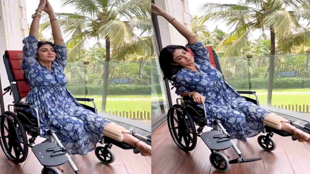 Shilpa Shetty practices yoga in a wheelchair: ਅਦਾਕਾਰਾ ਸ਼ਿਲਪਾ ਸ਼ੈੱਟੀ ਹਾਲ ਹੀ ਵਿੱਚ ਇੱਕ ਆਉਣ ਵਾਲੇ ਪ੍ਰੋਜੈਕਟ ਦੀ ਸ਼ੂਟਿੰਗ ਦੌਰਾਨ ਆਪਣੀ ਲੱਤ ਉੱਤੇ ਸੱਟ ਲੱਗ ਗਈ ਸੀ। ਜਿਸ ਤੋਂ ਬਾਅਦ ਹੁਣ ਉਹ ਘਰ 'ਚ ਆਰਾਮ ਕਰ ਰਹੀ ਹੈ। ਪਿਛਲੇ ਹਫਤੇ ਉਨ੍ਹਾਂ ਨੇ ਹਸਪਤਾਲ ਦੇ ਅੰਦਰ ਵ੍ਹੀਲਚੇਅਰ 'ਤੇ ਬੈਠੀ ਆਪਣੀ ਤਸਵੀਰ ਸਾਂਝੀ ਕੀਤੀ ਸੀ। ਹੁਣ ਕਿੰਨੇ ਦਿਨਾਂ ਬਾਅਦ ਅਦਾਕਾਰਾ ਨੇ ਆਪਣਾ ਇੱਕ ਨਵਾਂ ਵੀਡੀਓ ਸ਼ੇਅਰ ਕੀਤਾ ਹੈ। ਜਿਸ ਤੋਂ ਬਾਅਦ ਪ੍ਰਸ਼ੰਸਕ ਅਦਾਕਾਰਾ ਦੀ ਹਿੰਮਤ ਦੀ ਤਾਰੀਫ ਕਰ ਰਹੇ ਹਨ।