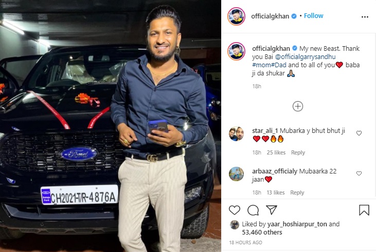ਗਾਇਕ ਜੀ ਖ਼ਾਨ ਨੇ ਖਰੀਦੀ ਨਵੀਂ ਗੱਡੀ, ਪ੍ਰਸ਼ੰਸਕ ਦੇ ਰਹੇ ਹਨ ਵਧਾਈਆਂ